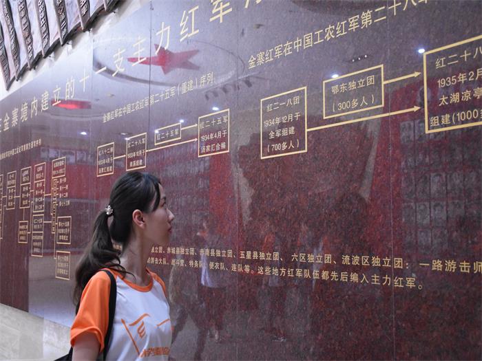 本网讯 (文/严佩智 摄/严雅倩 闫丽婷 )有这么一个圣地,处中原与江南之交,临江汉与江淮之要,既见证了革命年代的峥嵘岁月,也记录下了烈士们矢志奋斗的青春。这,就是金寨,一个饱经战火洗礼,浸透红色精神之地。为了走进那段历史,坚定自身信念,2018年7月19日安徽师范大学马克思主义学院赴金寨县调研实践团队来到了金寨县红军纪念堂参观学习。