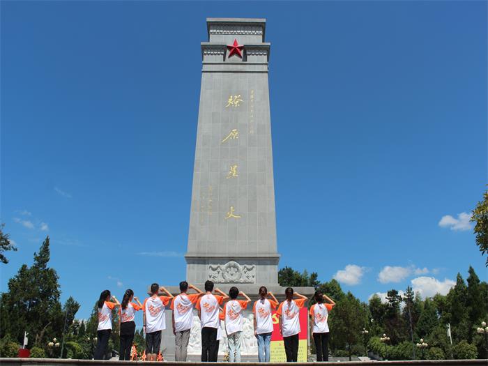 走进纪念馆,烈士们如火的精神点燃了我们队员内心的火热;走出纪念馆,阳光依旧炽热,然而这次我们实践队员却没有一个人感到燥热,而是多了一份沉思和宁静。在队长的带领下,调研团队全体面对着馆外矗立着高高的革命英雄纪念碑,对视着熠熠闪光的党旗,举起了右拳,一起高呼:我志愿加入中国共产主义青年团……为共产主义事业而奋斗!全体队员嘹亮的声音回荡在广场的上空,阳光洒落在队员们年轻的面庞。宣誓完毕后,大家的眼神充满了对生活的渴望,更是坚定了共产主义信仰。忆往昔初次加入共青团时那份激动与向往,到如今更加坚定了共产主义信仰以及自身努力奋斗的方向与信念,不禁在心中感念今日之岁月静好,只有不忘初心,继续前进,才能将红色文化及其红色精神转化为行动力量。