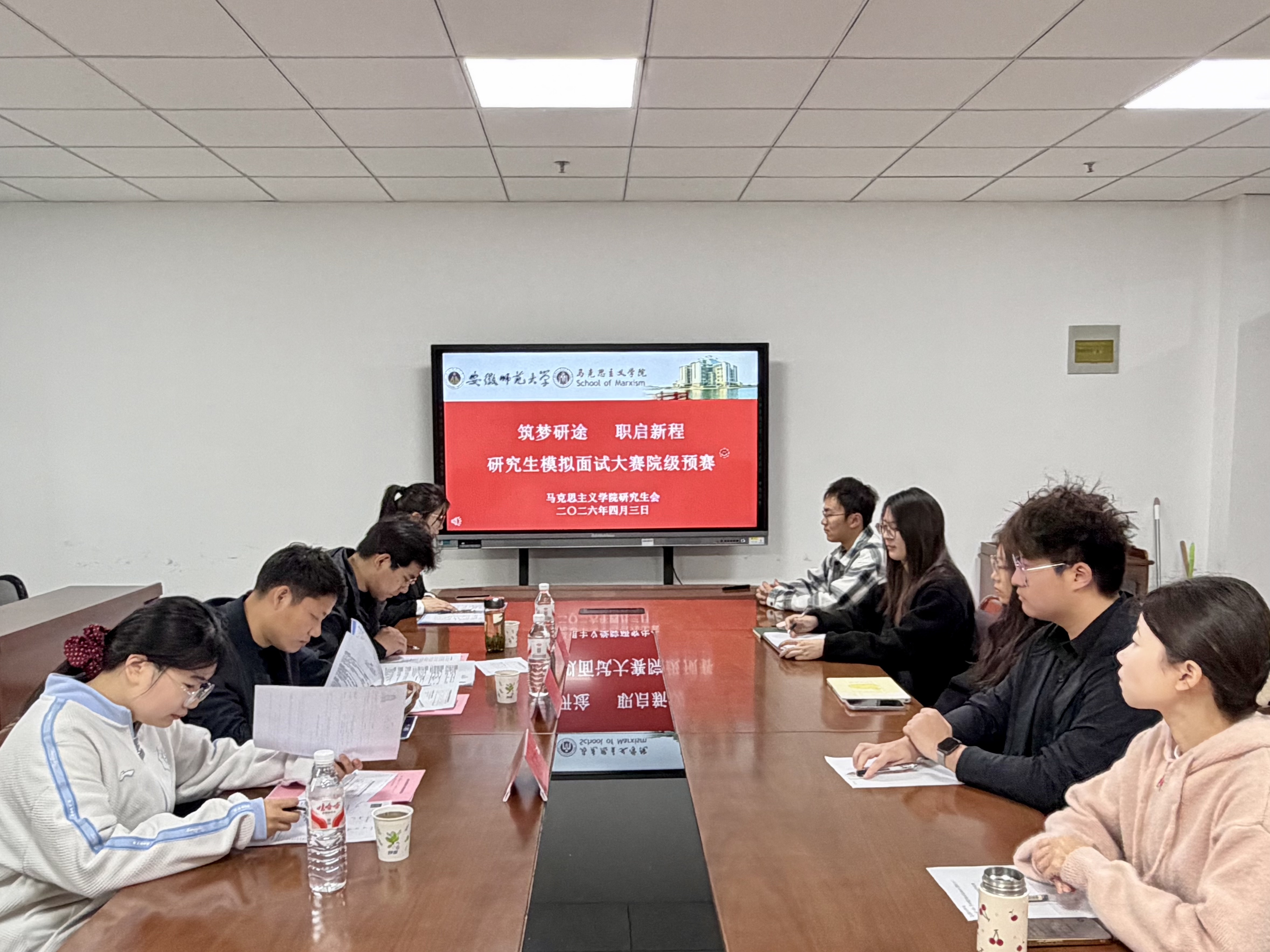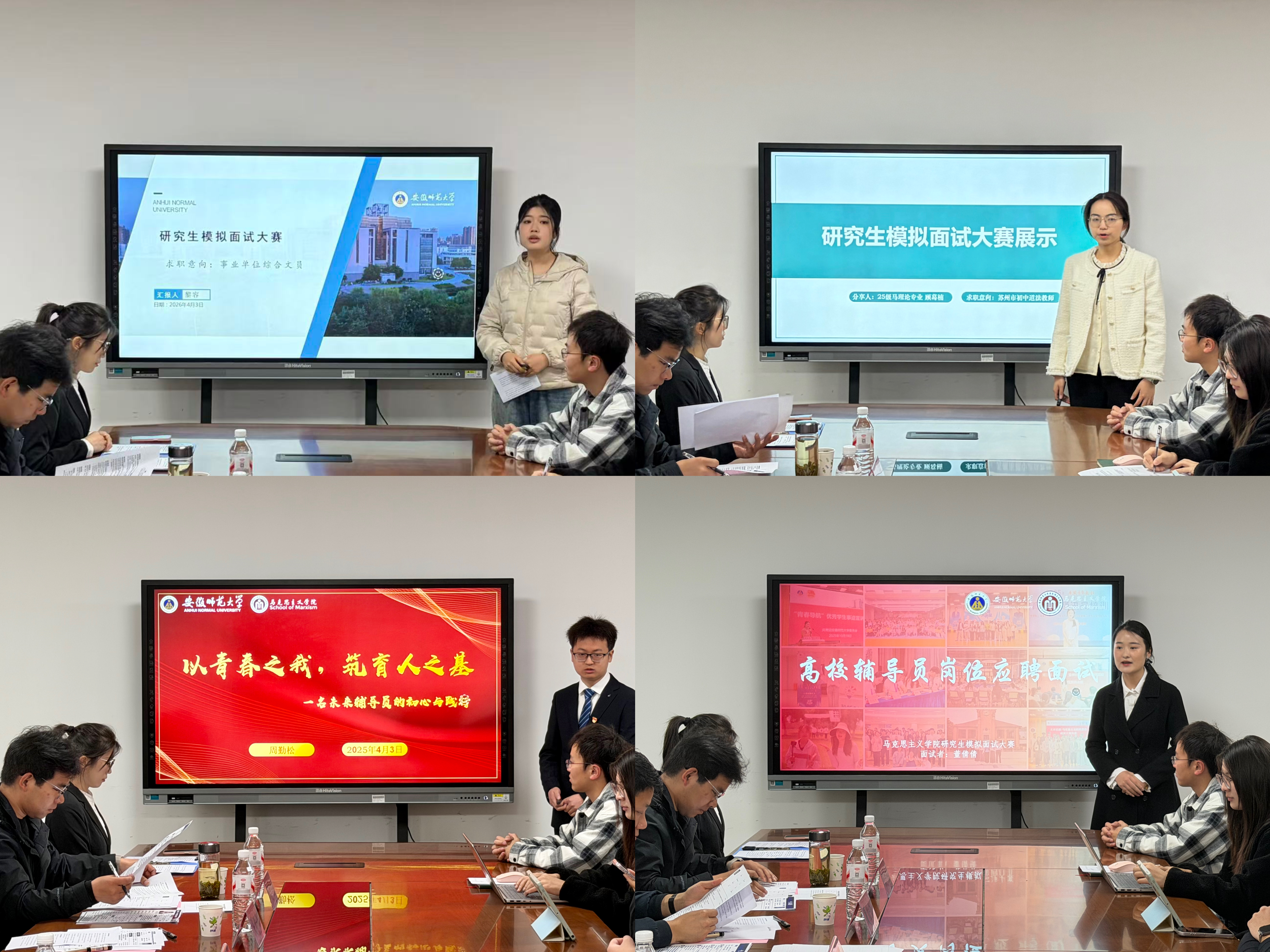 为提升我院研究生的面试技巧,增强择业意识和就业竞争力,4月3日上午,学院在G211会议室举办“筑梦研途·职启新程”研究生模拟面试大赛院级预赛。学院辅导员夏盼盼、王梦雨、2023级研究生方思韵担任评委,2025级部分研究生到场观摩。院研究生会委员李梦楠主持比赛。